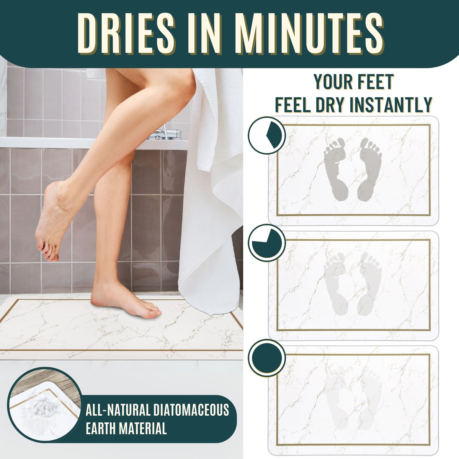 This quick-drying stone bath mat absorbs water instantly and dries within minutes. Its expanded size ensures more contact with your feet, keeping both your skin and bathroom floor dry for a fresher, cleaner experience.