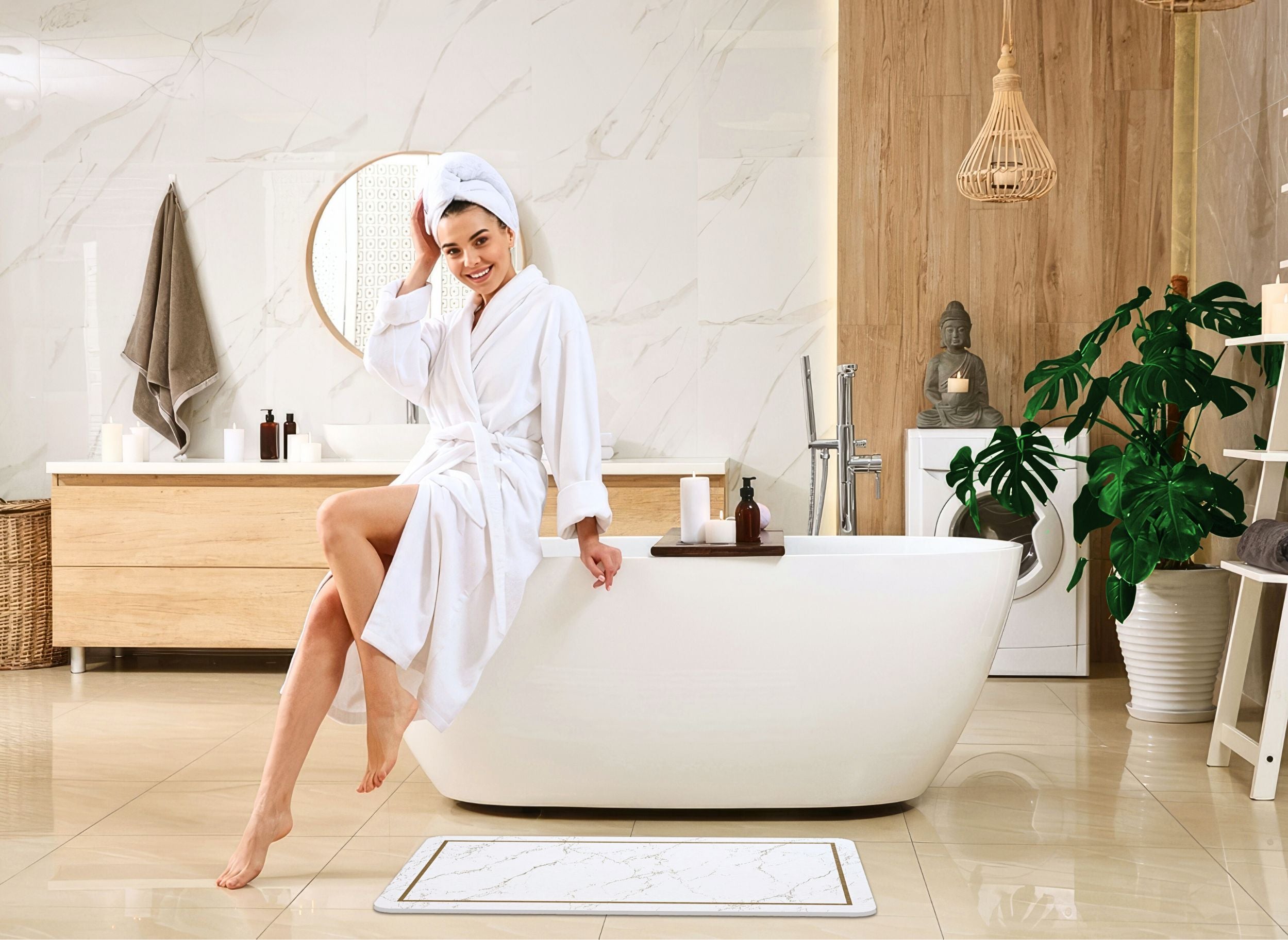 Elevate your bathroom with a minimalist stone bath mat that blends seamlessly into any décor. Completely logo-free, it offers a clean, uncluttered aesthetic—no distracting branding, just pure style and function.